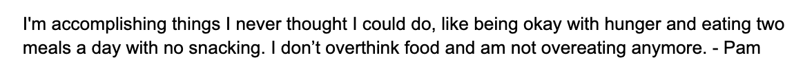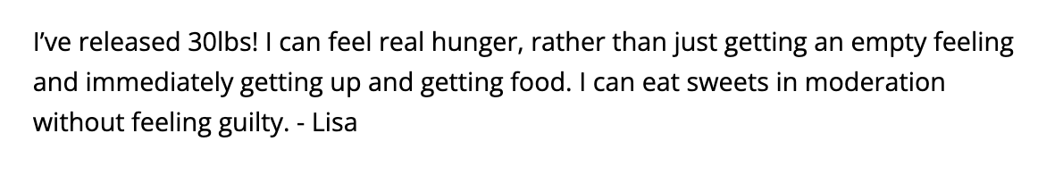 In this program we address the reasons why youâve been overeating, all this overdesire, so that once you release the weight thereâs no going back.
